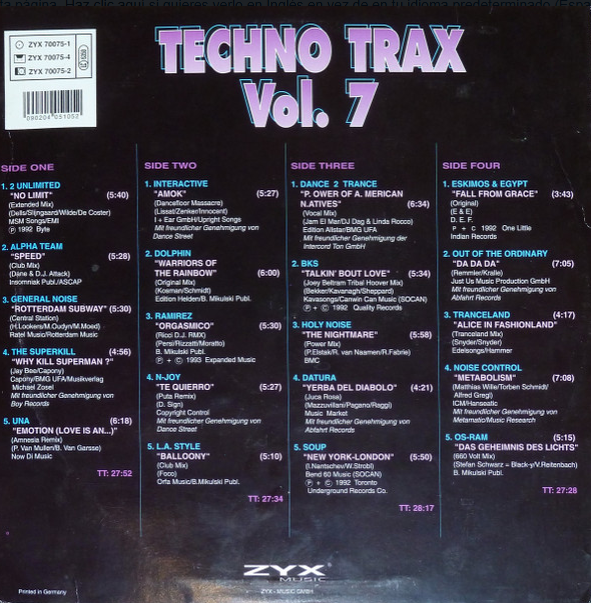Various – Techno Trax Vol. 7 – ZYX Music 2×12″